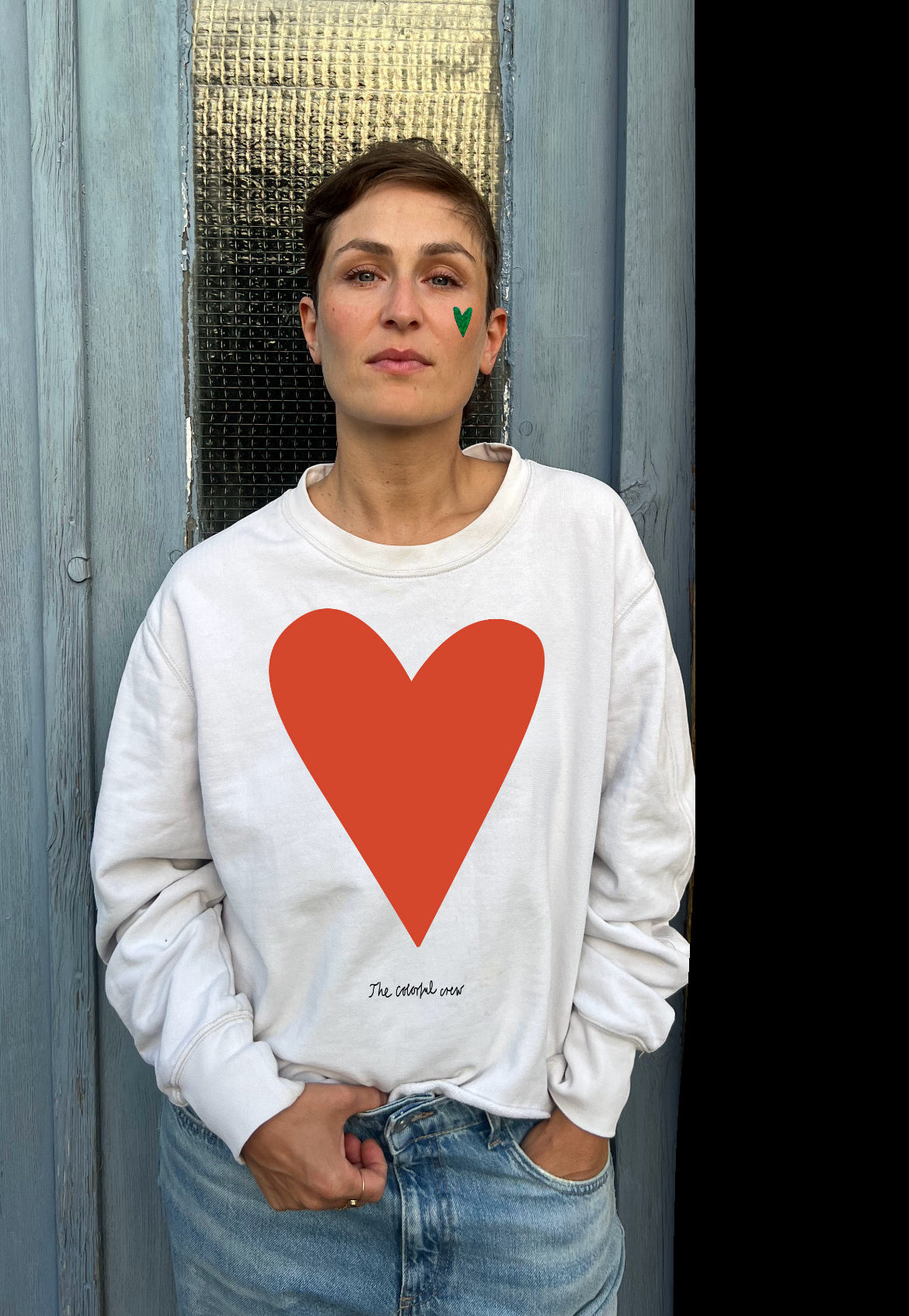 White, boxy fit, unisex, Womens Sweater made from 100% organic cotton with a brand new papercut crafted ❤️. LOVE goes out to all people supporting this brand from the very beginning when I started it 10 years ago in 2016.