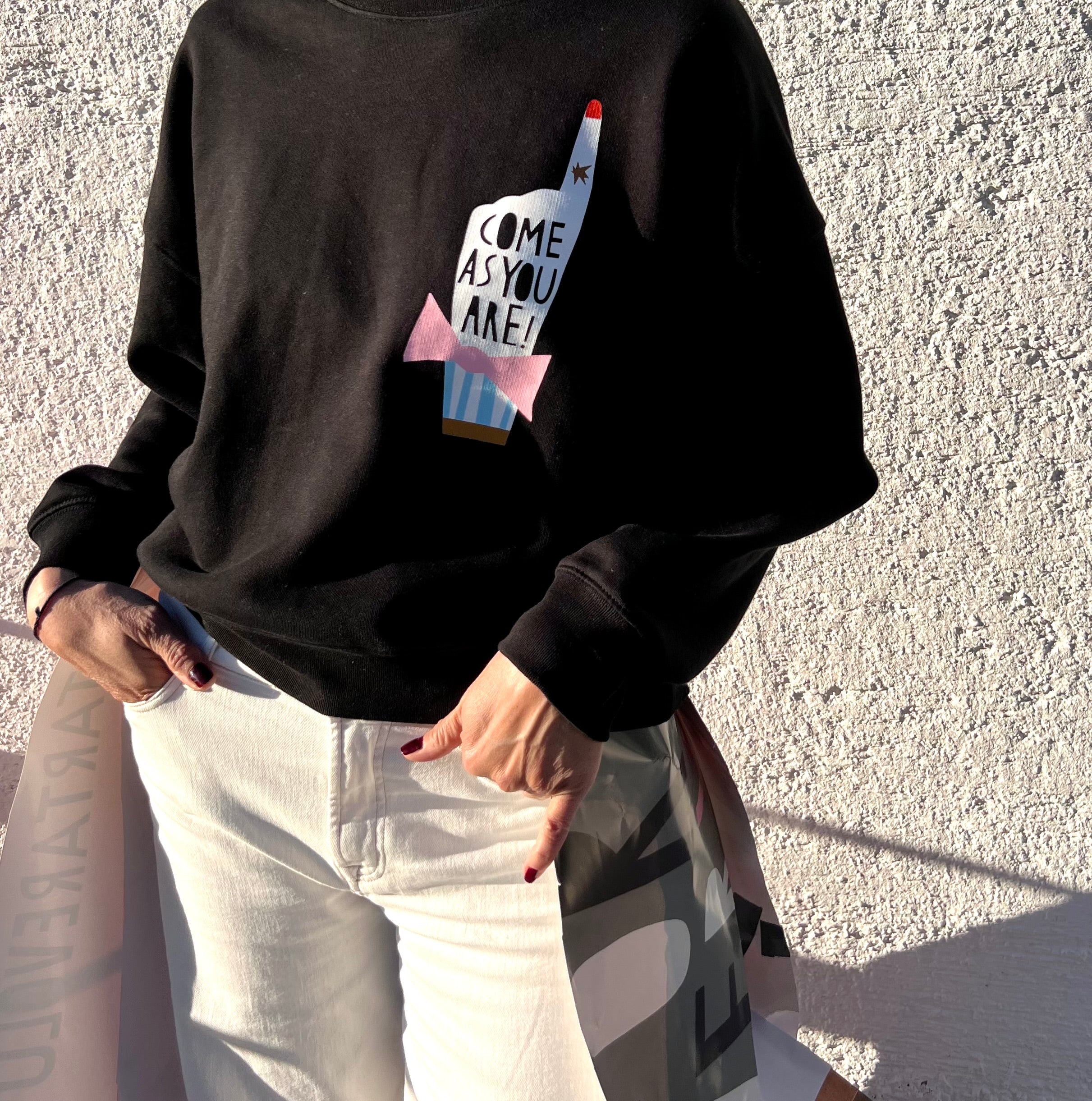 NEW // black COME AS YOU ARE Sweater mit unverwechselbarem paperart inspiriertem Druck.